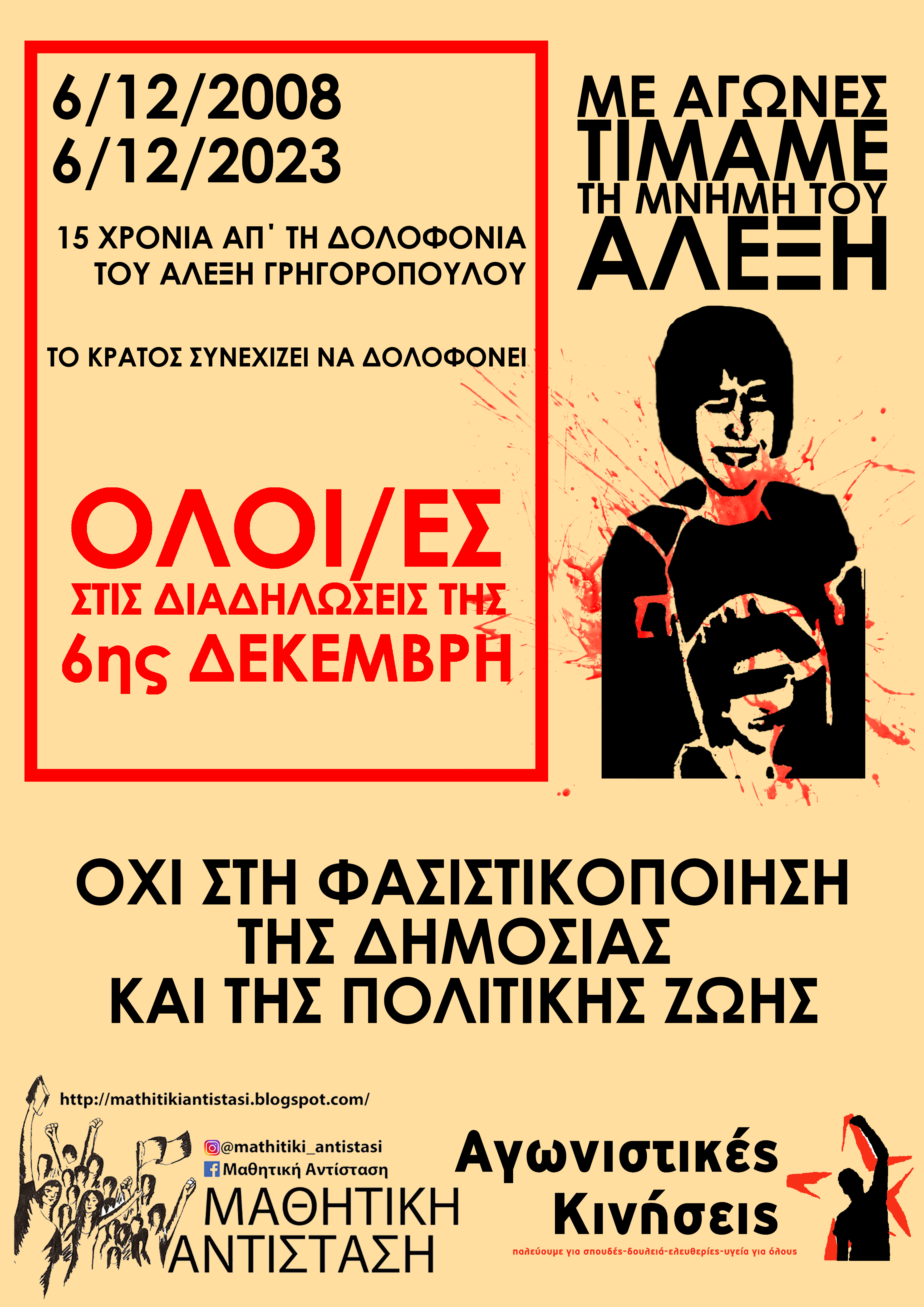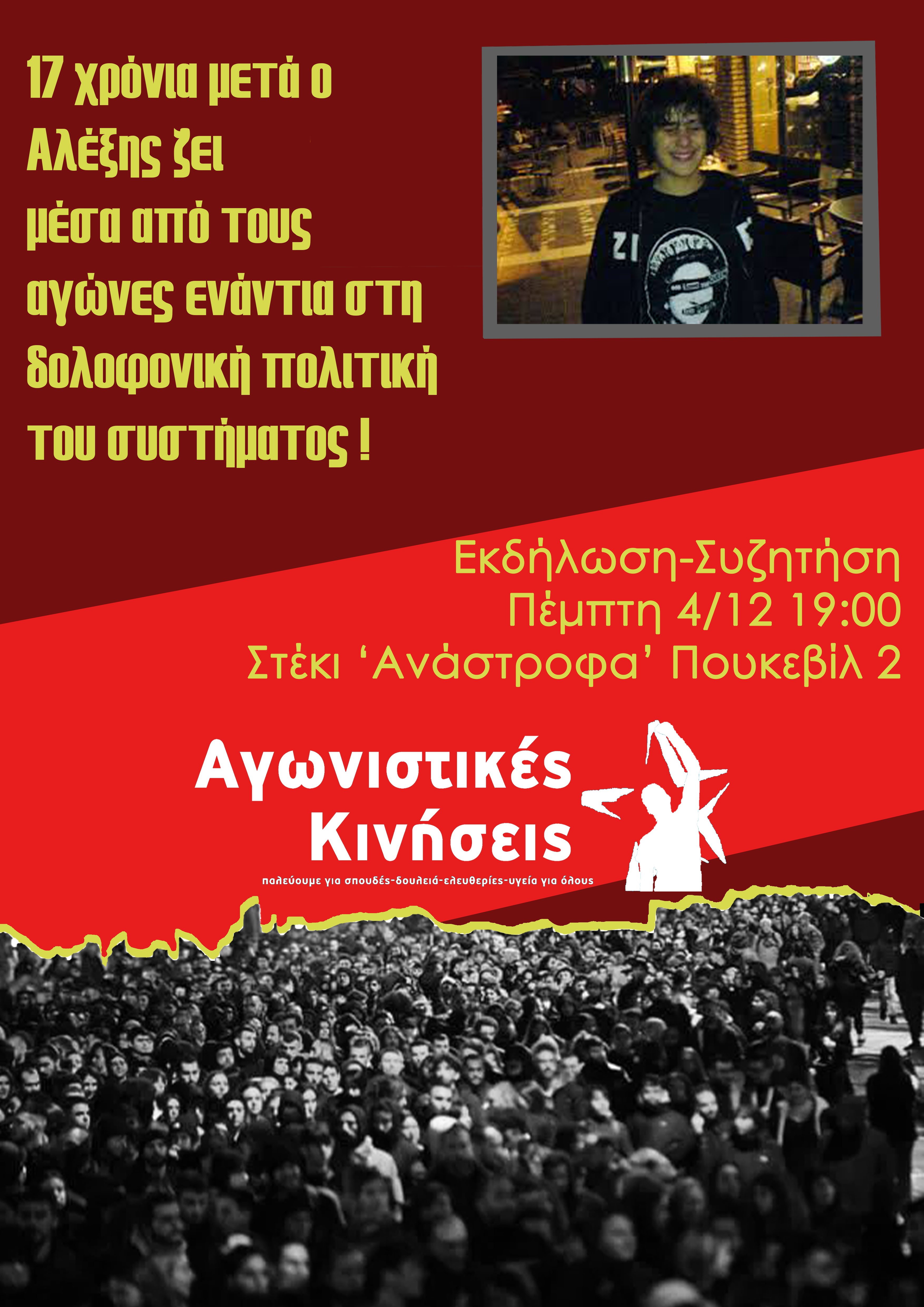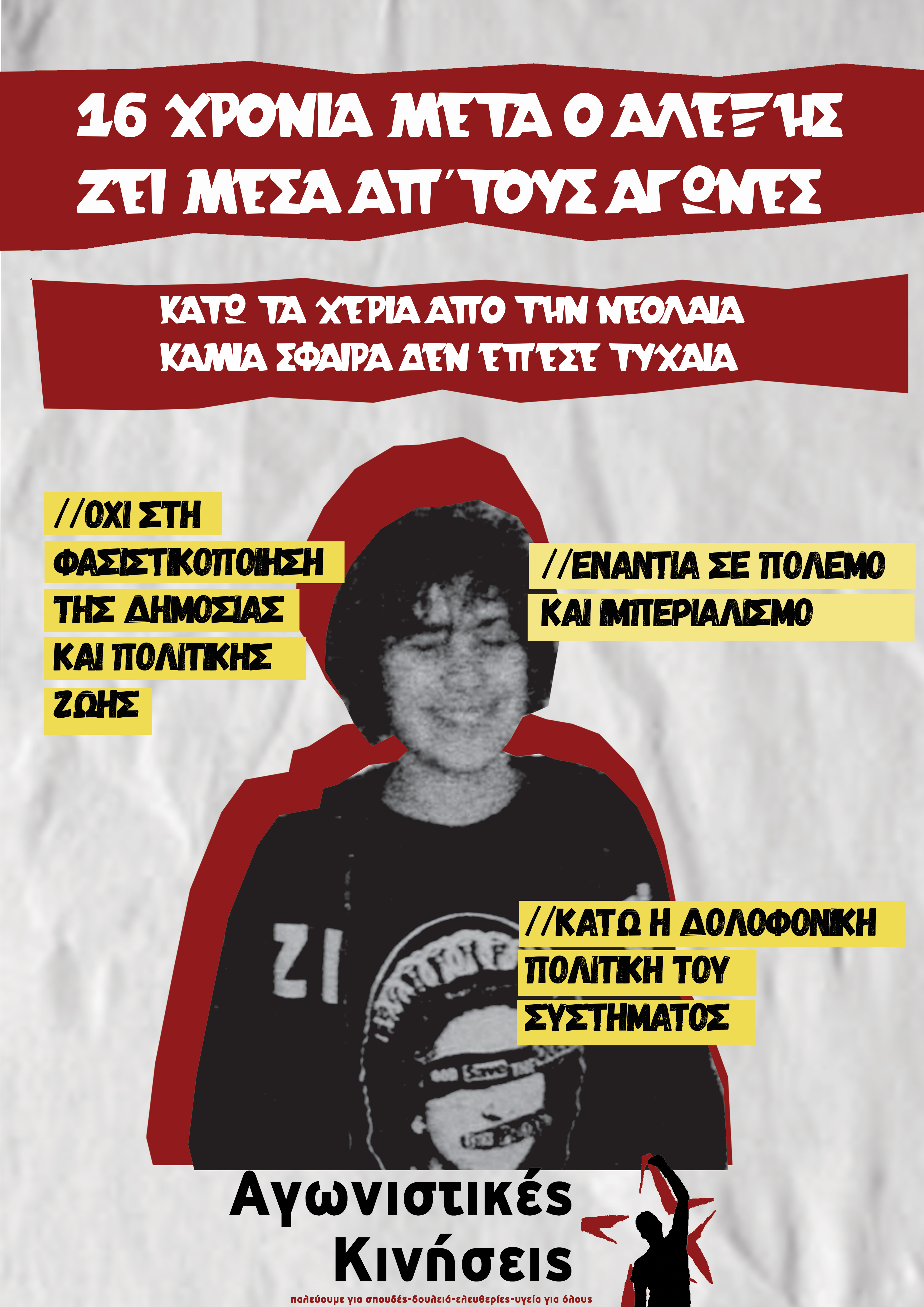 ΑΘΗΝΑ | 17 χρόνια μετά τη δολοφονία, λαός και νεολαία τιμάμε με αγώνες τη μνήμη του Αλέξανδρου Γρηγορόπουλου