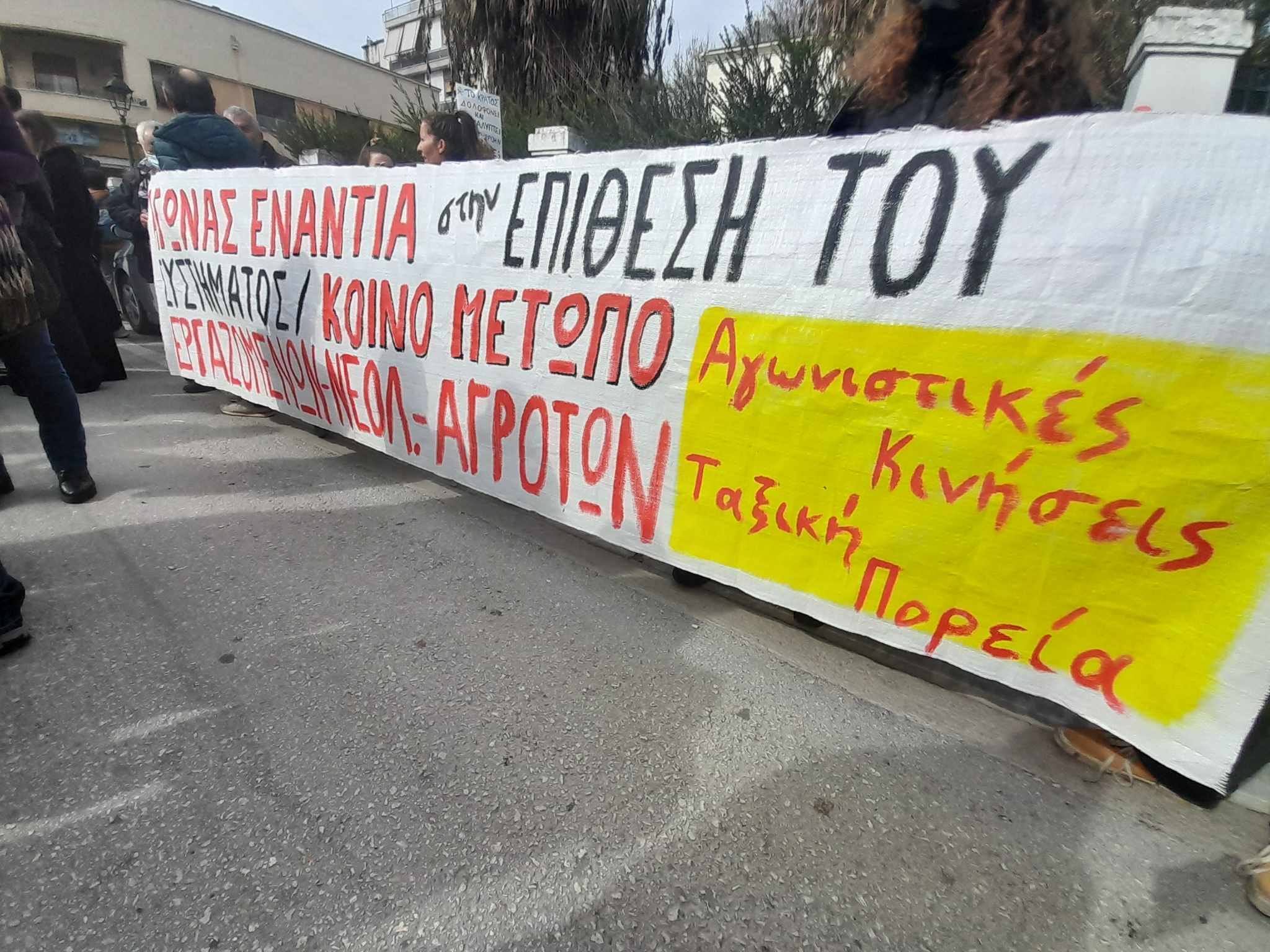 Οι Αγωνιστικές Κινήσεις σε κοινό μπλοκ και πανό με τη Ταξική Πορεία συμμετείχαν στην συγκέντρωση και την πορεία με συνθήματα και μαζικό μοίρασμα της προκήρυξης.