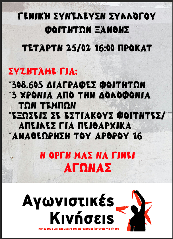 Ολοι/ες στην Γενική Συνέλευση την Τετάρτη 25/02, 16:00, ΠΡΟΚΑΤ!