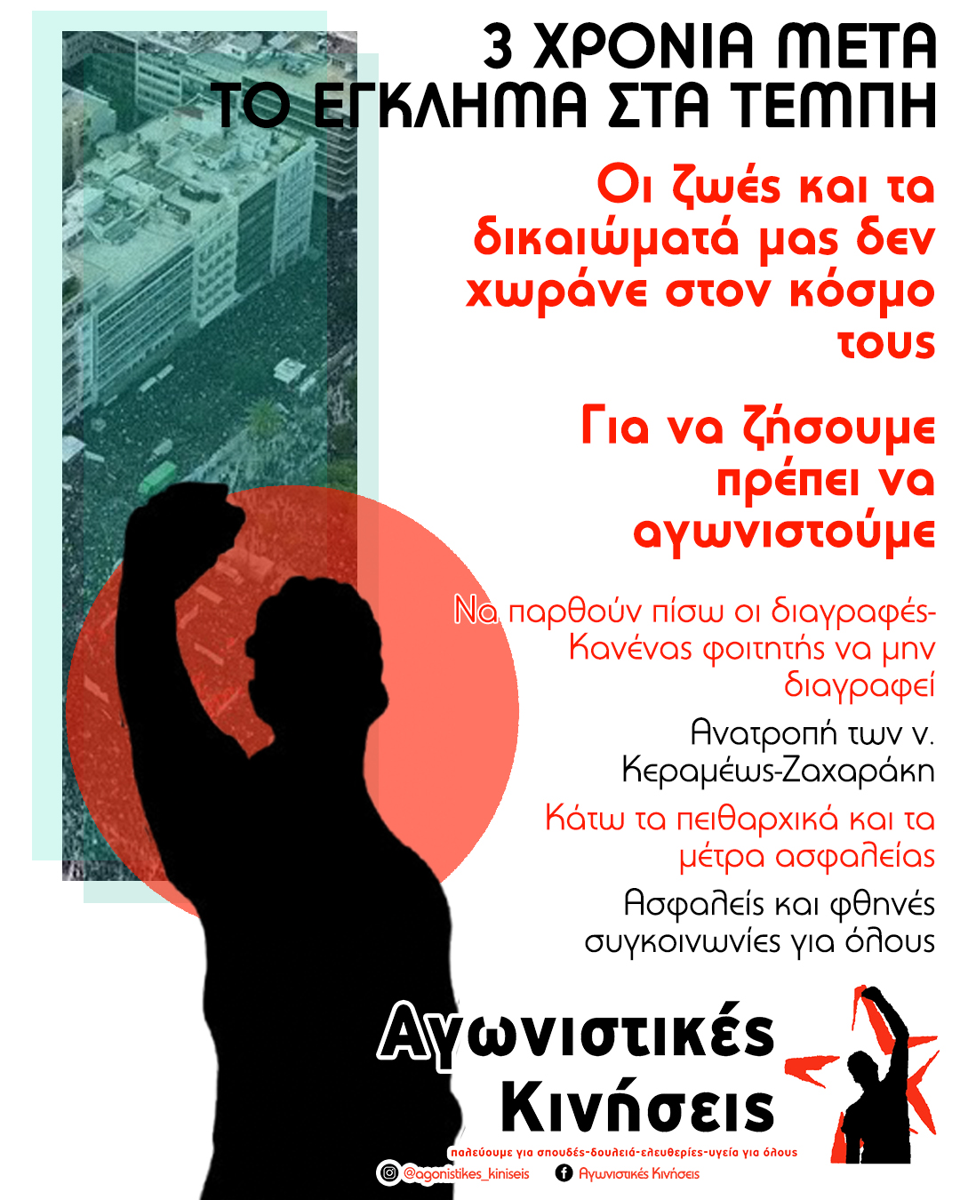 3 χρόνια μετά το έγκλημα στα Τέμπη, η οργή συνεχίζει να μας πνίγει. Γιατί το έγκλημα αυτό αποκάλυψε με τον πιο ωμό τρόπο το απάνθρωπο πρόσωπο αυτού του συστήματος, που αδιαφορεί για τις ζωές μας , που μας θεωρεί αναλώσιμους. Το έγκλημα στα Τέμπη δεν...