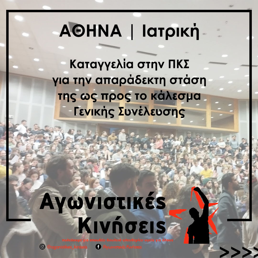 Καταγγέλλουμε την ΠΚΣ Ιατρικής, όπου για μια ακόμα φορά με την στάση της αποδεικνύει πως